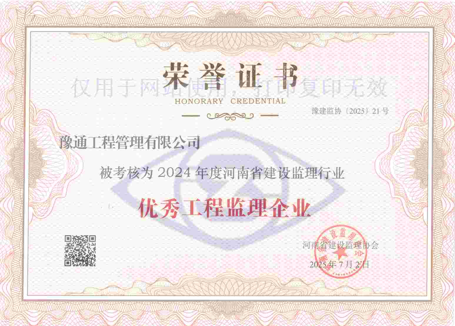我公司連續(xù)多年榮獲該榮譽,這是協(xié)會及社會各界對公司工作成效的高度肯定,更是對我們未來發(fā)展征程的激勵和鞭策。我們將以此為動力,不斷提升核心能力,持續(xù)提供高品質、全方位的技術服務,傾力監(jiān)造更多精品工程,為河南建設監(jiān)理行業(yè)高質量發(fā)展貢獻更多專業(yè)力量。