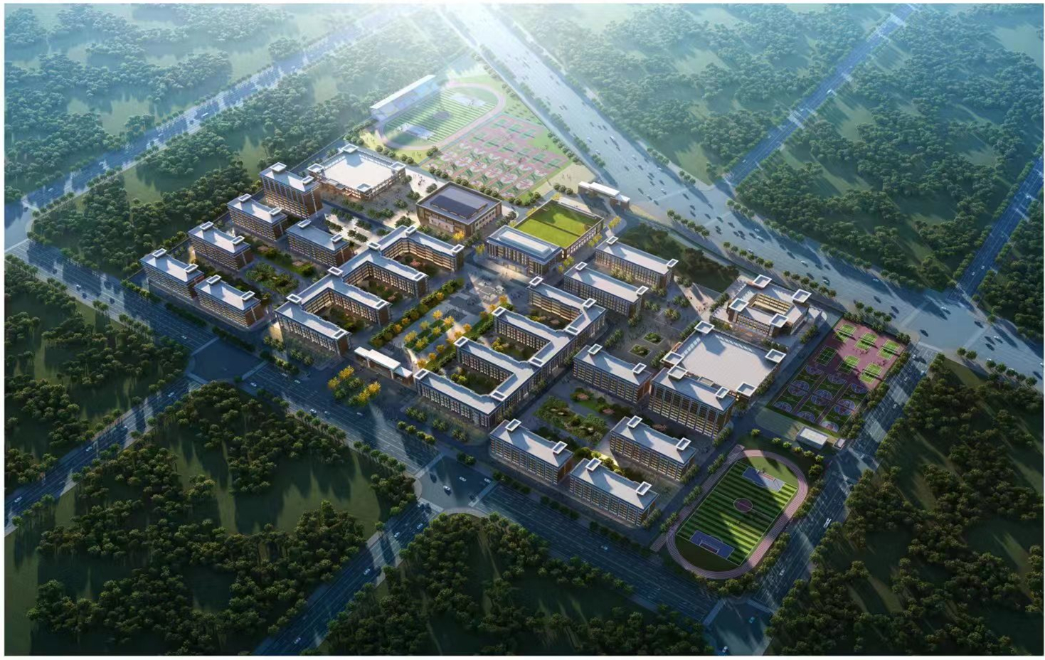 體育設施主要包含:1個400米跑道運動場,1個200米跑道運動場,18個籃球場,15個排球場,60個乒乓球場地,器械操場約4000平方米,室內比賽場地3個,項目建成后可新增高中學位5000個,有效解決高中“大班額”問題,從而進一步提升高中教育教學水平。