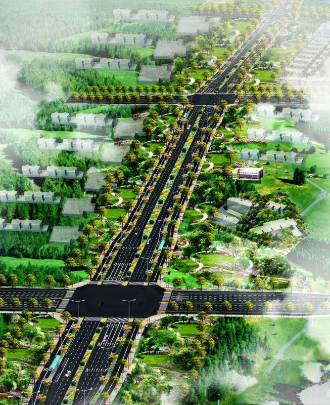 道路設計起點與規劃西環路平交,路線呈東西走向,沿線依次與威遠門北路、產航路、延安北路、長潞連接線平交,設計終點與現狀東環路平交。市政道路總長約5.3km,標準段寬度為60米,雙向6車道,設計速度為50km/h,路面采用瀝青混凝土路面。綜合管廊長約5.3km,斷面凈尺寸為(1.7m+5.8m+4.2m)x3.4m(西環路-延安北路)及(1.7m+5.8m+3.8m)x3.4m(延安北路-東環路)。長潞線(北環街-科創大道)綜合管廊長度約8.43km,新建雙艙綜合管廊(6.0+5.6)x3.6m。